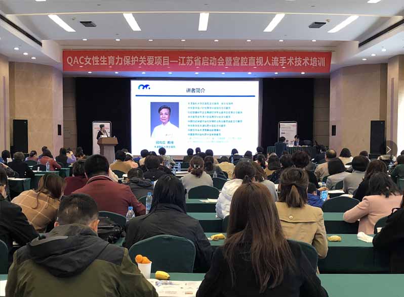 3月24日上午8:30,由中国妇女发展基金会、中华医学会计划生育学分会主办,江苏省人民政府妇女儿童工作委员会办公室承办的QAC“女性生育力保护”关爱项目——江苏省启动会暨宫腔直视人流手术技术论坛在南京市华东饭店二楼多功能厅召开。